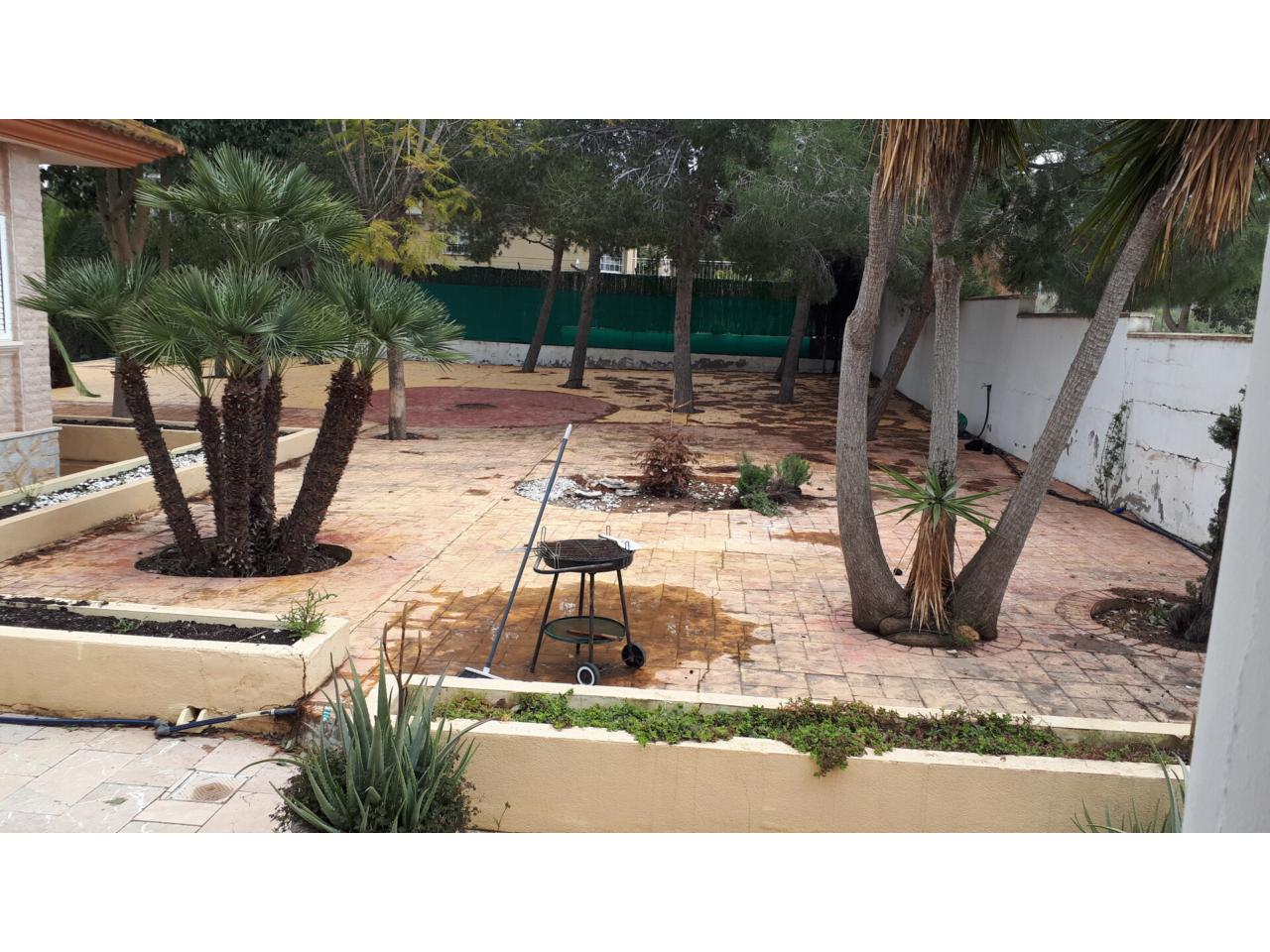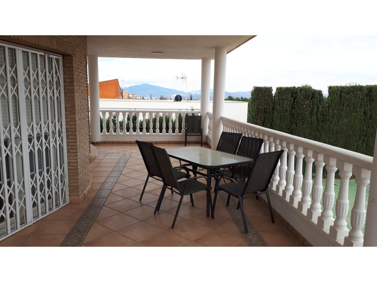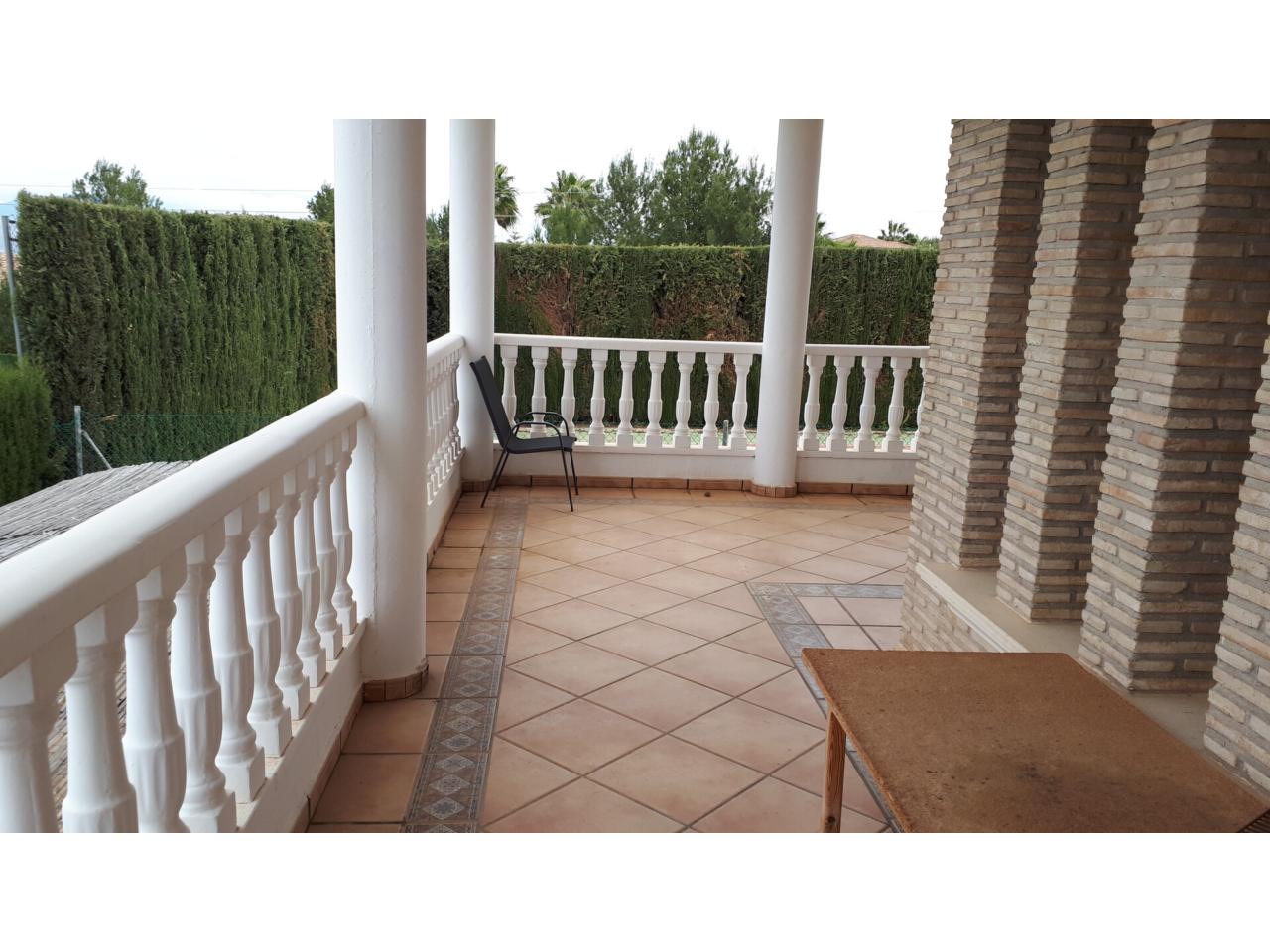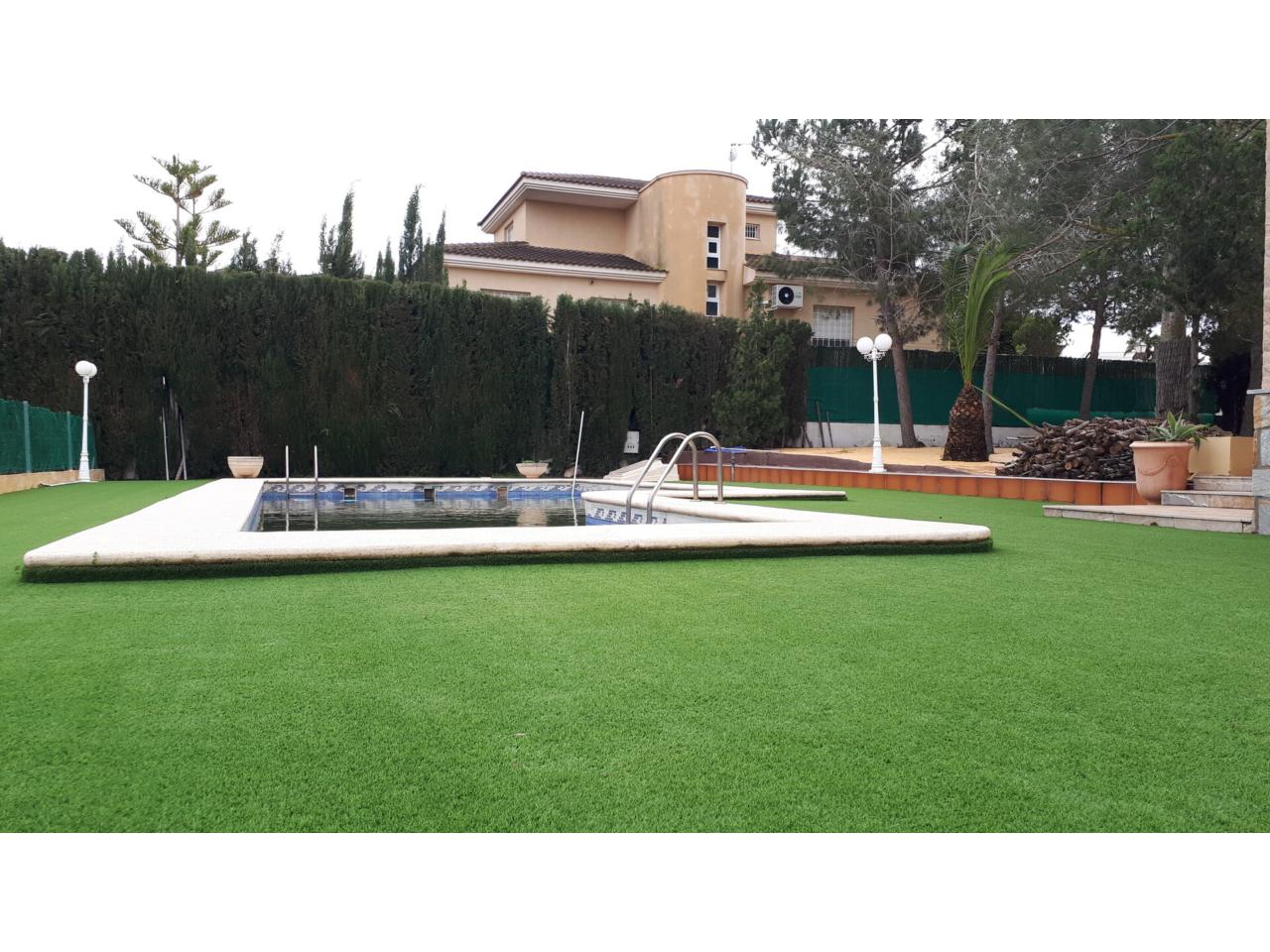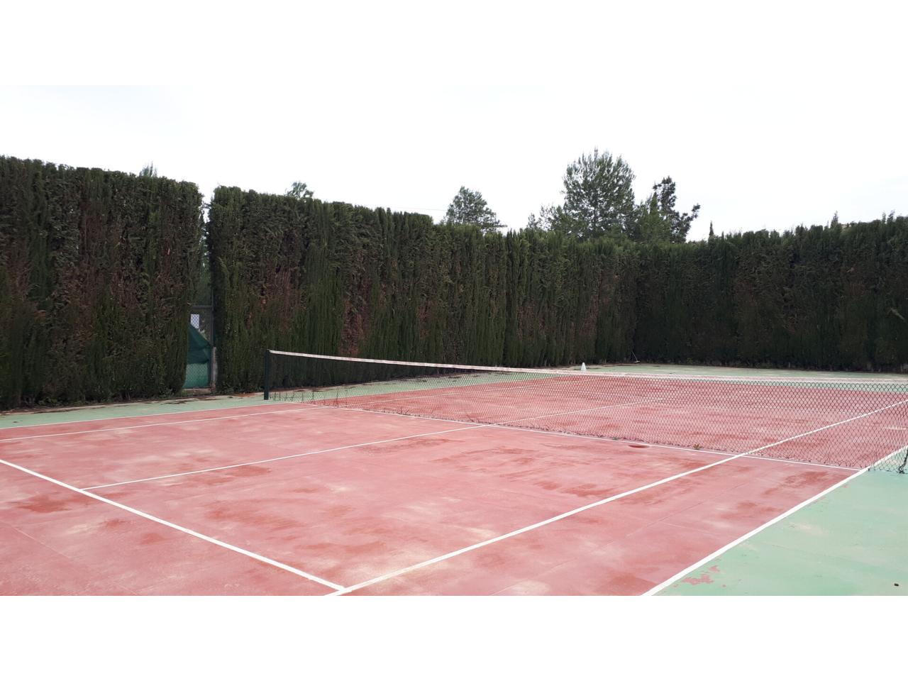 Se vende fantástico chalet en La Alcayna, sobre parcela de 2.040 m², con piscina de 70 m², pista de tenis, jardín y amplias terrazas, vivienda construida en 2 plantas con un total de 610 m² ( incluyendo terrazas ) distribuido en planta principal: amplio hall de entrada, salón de unos 40 m² con salida a terraza, cocina independiente de unos 25 m² amueblada con electrodomésticos, lavadero, cuarto de plancha y despensa, 4 dormitorios y 2 baños, dormitorio principal tipo suite con baño y vestidor, todo rodeado de terrazas, planta baja: zona aparcamiento para 6 vehículos, 1 aseo, habitación sala de estar con chimenea y cocina auxiliar, suelos de gres rústico, carpintería interior de pino oregón, armarios empotrados, carpintería exterior PVC blanco con doble cristal, rejas, calefacción por radiadores centralizada en toda la vivienda, luminosa.
