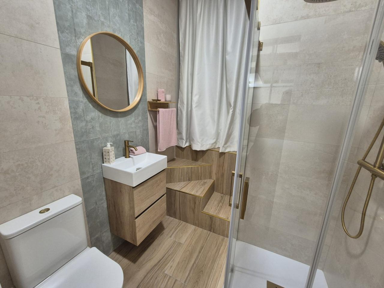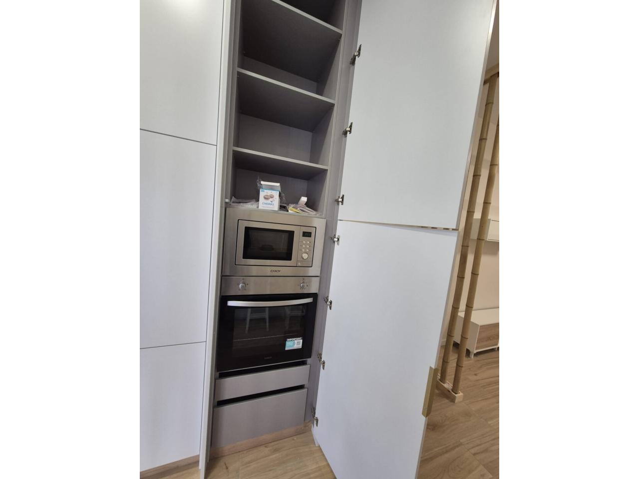 Totalmente amueblado y con electrodomésticos. Todo recién instalado, sin uso, en perfectas condiciones. Como puedes ver en las fotografías, todo lo instalado es de la mejor calidad y última generación. Todo en blanco y dorado, para una mayor sensación de amplitud.