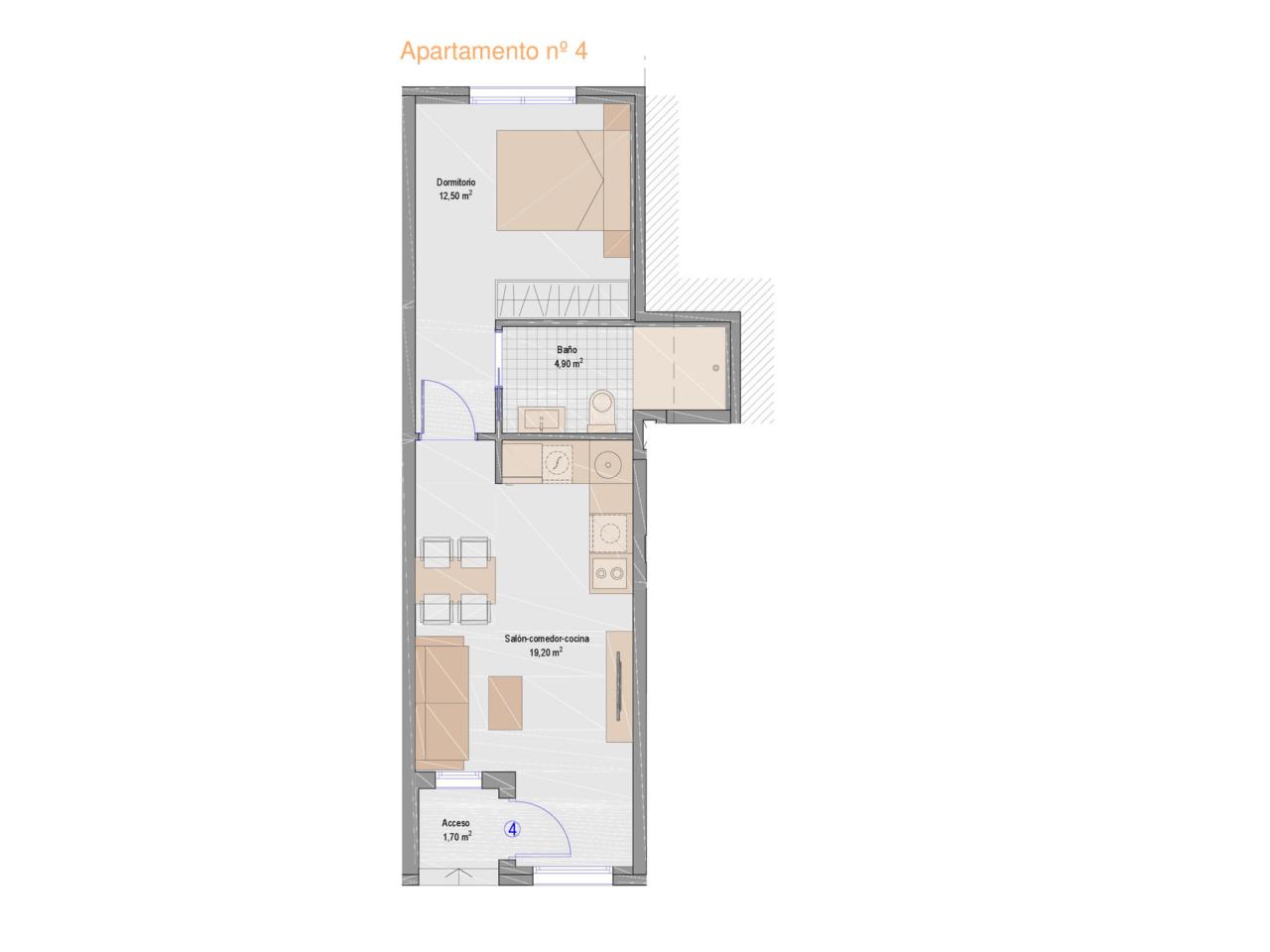 Este apartamento de 44m² construidos aproximadamente se compone de salón-comedor-cocina, 1 habitación y 1 baño.